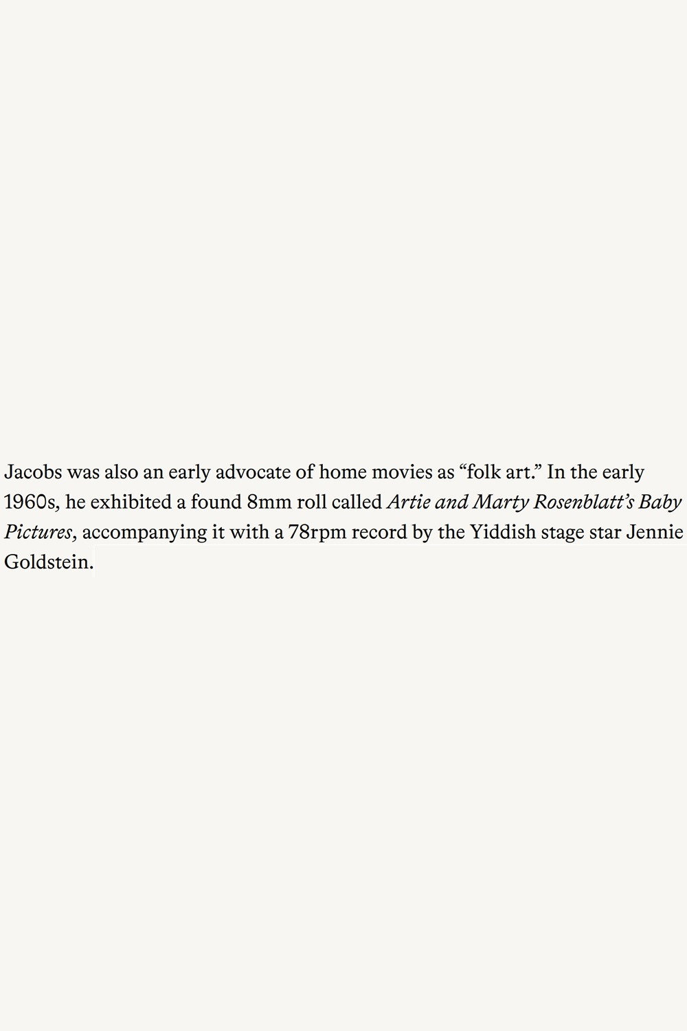 Existing home movie titled and placed into distribution by Jacobs without intervention.